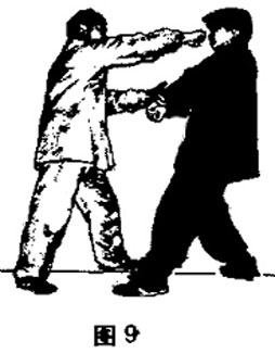 move rapidly forward for half step, your left palm changes into fist